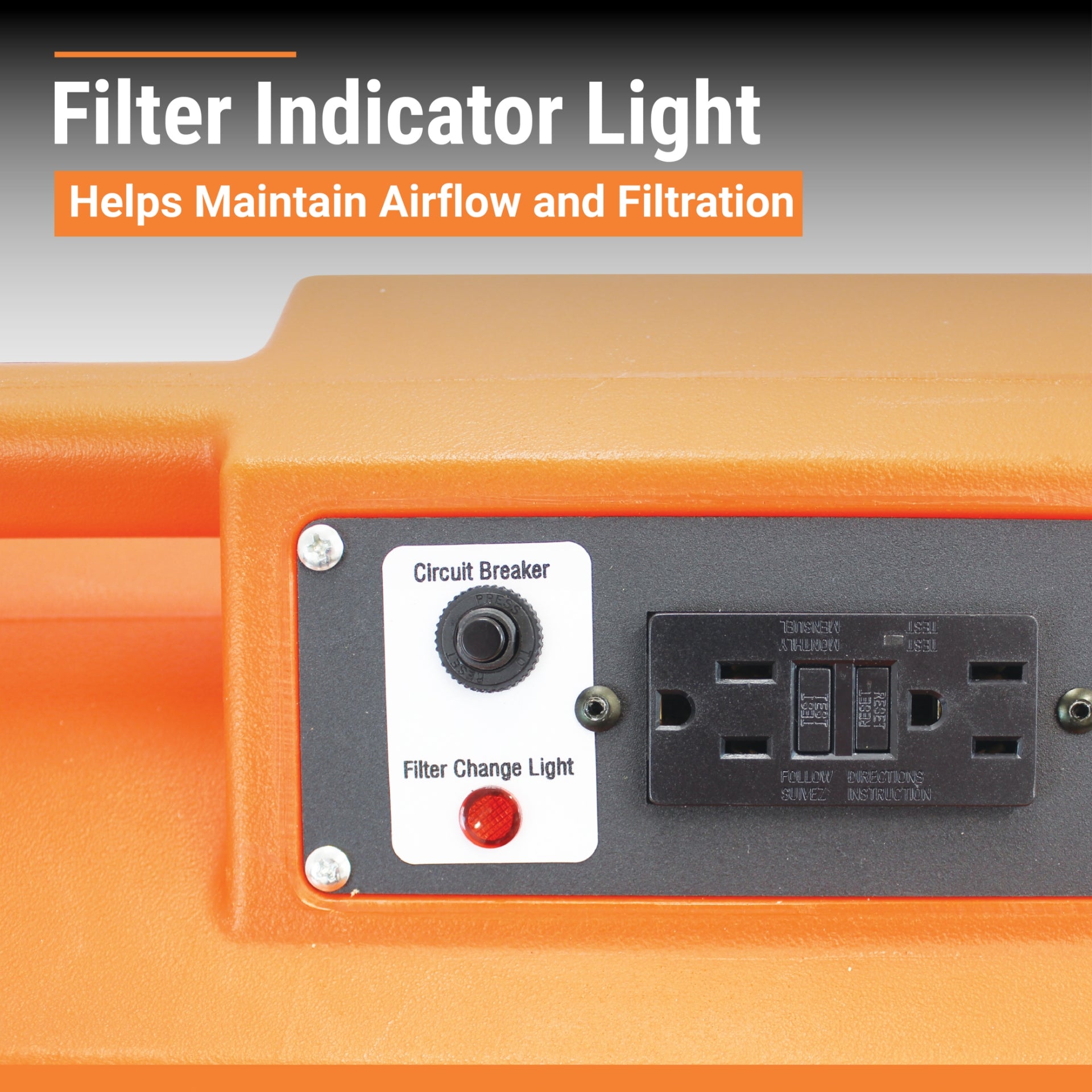 • A filter indicator light lets you know when to change the filter to maintain optimum airflow and filtration