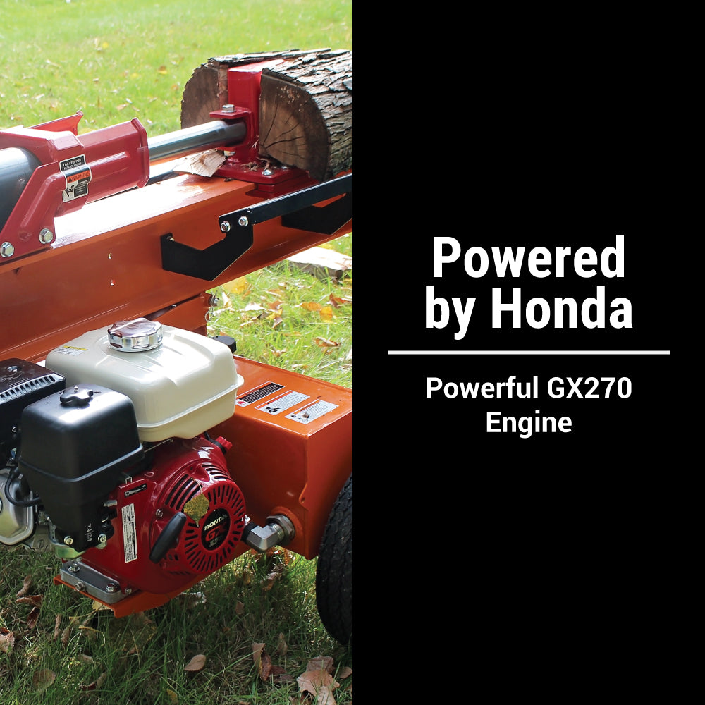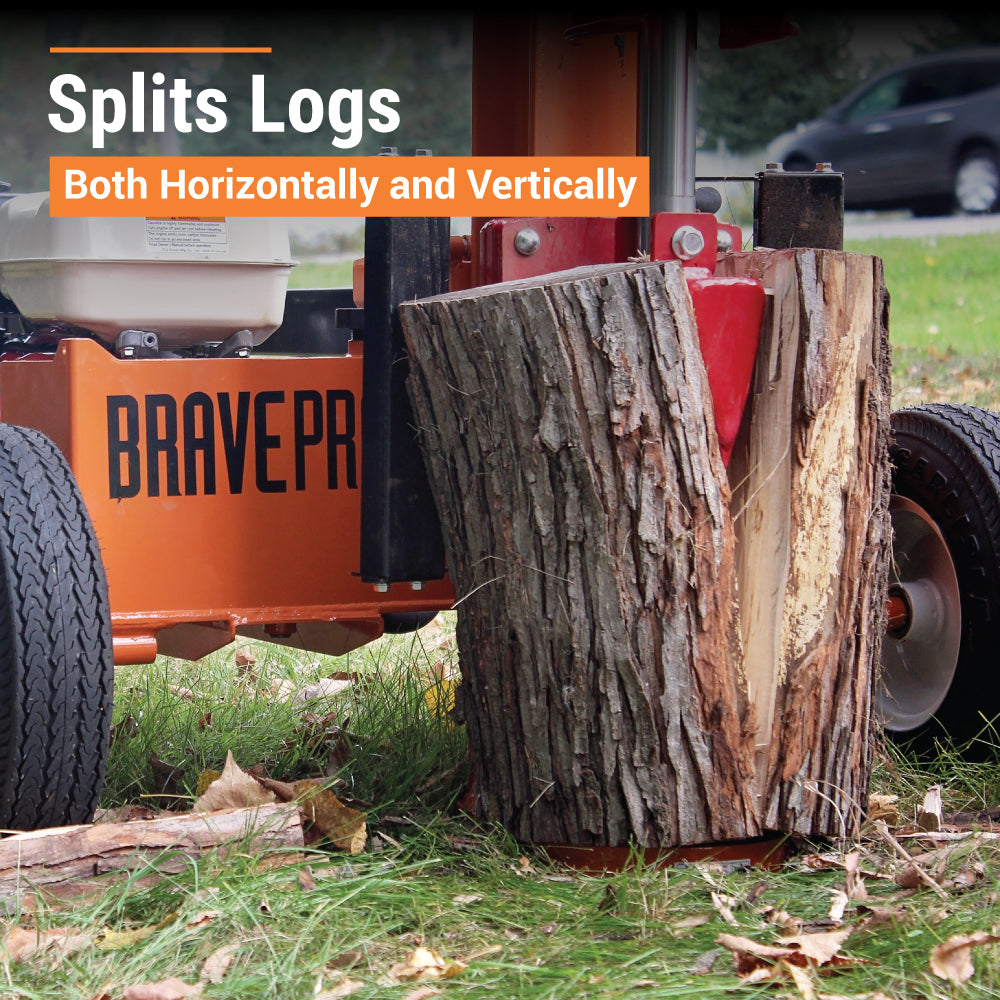 The BravePro 37-ton log splitter gives you the ability to split both vertically and horizontally. Tackle the thickest green logs with ease with the 37 tons of splitting pressure â” ideal for professionals and rental companies. The reliable Honda GX engine, standard log cradle, log dislodger, and convenient ball hitch delivers more bells and whistles for less cost than a typical rental-grade splitter.