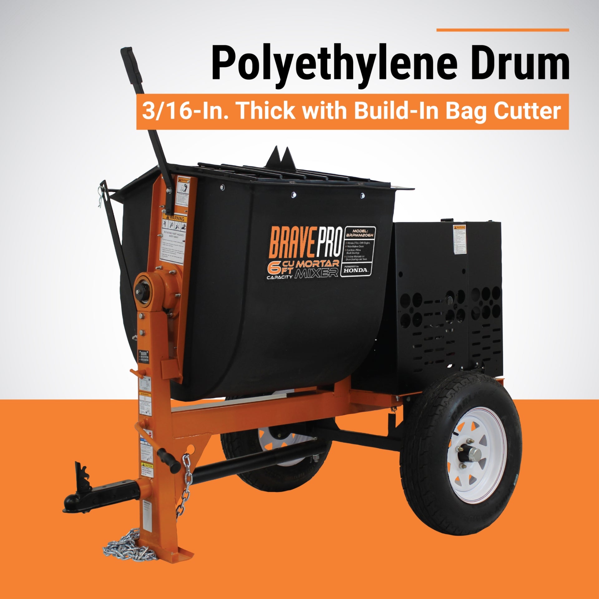 BravePro Mortar Mixer | 6 Cu. Ft. Poly Drum | Honda GX240