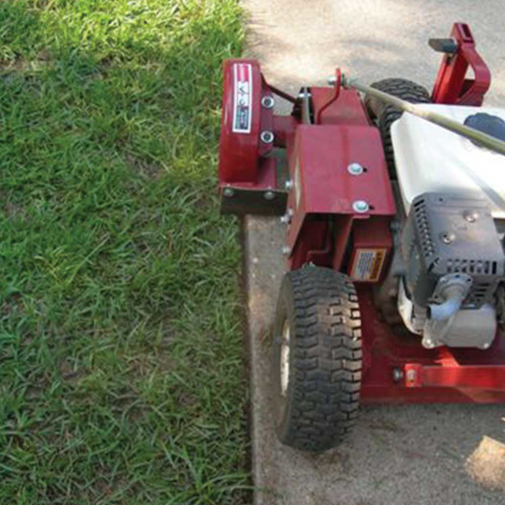 – Adjustable curb wheel helps track edges and improves control around hardscape