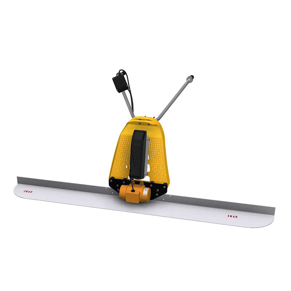 This battery-powered concrete screed by ENAR is an eco-friendly model with a low noise level, making it suitable for indoor use. It features a specially shaped aluminum alloy blade to make the finishing easier and quicker than other types of concrete screeds. The vibration-free handle is fully adjustable to ensure operator comfort and the handles collapse down for easy transport. Screed head is also compatible with Brave screed boards.