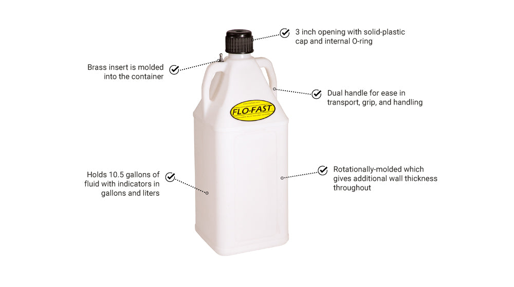 The FLO-FAST Diesel Exhaust Fluid container was designed to be used with DEF and a variety of other fluids for recreational uses and commercial purposes. The rotationally-molded polyethylene constructed container combined with dual handles make it ultra-functional and exceptionally durable; thus allowing it to hold up in any type of environment. The container is compatible with aqueous fluids, fuels, oils, and many types of chemicals including DEF. Size options of 5, 7.5, 10.5, and 15 gallons. The FLO-FAST Diesel Exhaust Fluid can will provide the utility and function necessary for all your portable fluid and fuel transfer operations.