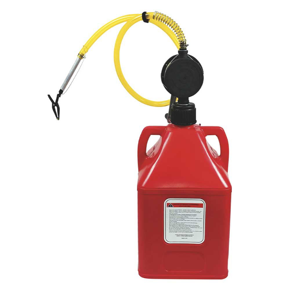 The FLO-FAST 15-Gallon Container with Pump is designed for refueling your marine, ATV, automobile or agricultural equipment. The professional model rotary hand pump will transfer up to 8 gallons per minute in either direction (pumps/draws fluid). The container is rotationally molded out of a high-density plastic material that is ultra-tough, providing long-lasting durability. The pump and container material is compatible with all types of gasoline and gasoline blends. The dual handles offer great portability when moving or transporting.