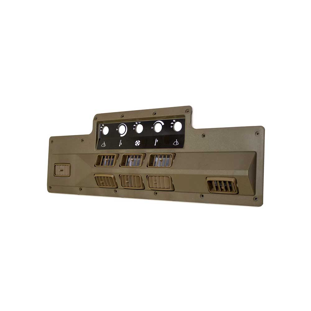Easily replace a worn or damaged air conditioning control bezel with this high-quality, pre-cut OEM replacement, designed for John Deere® tractors, cotton pickers, strippers, and self-propelled windrowers. This durable brown plastic bezel restores the look and function of your A/C controls for a factory-fresh appearance and reliable performance.