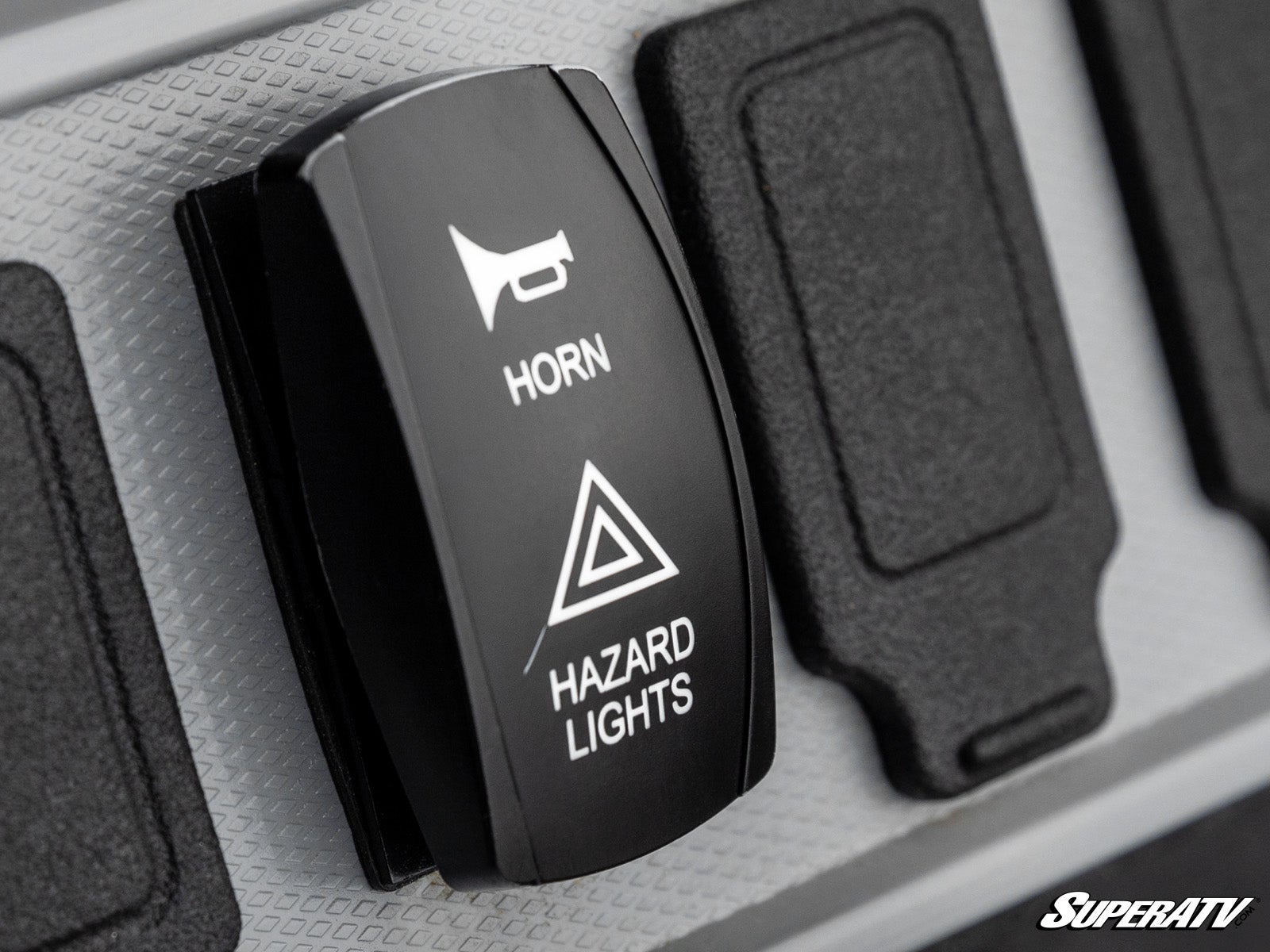 - Dash-Mounted Rocker Switches: Includes switches for horn, hazard lights, and blinkers; long press for extended signal duration.