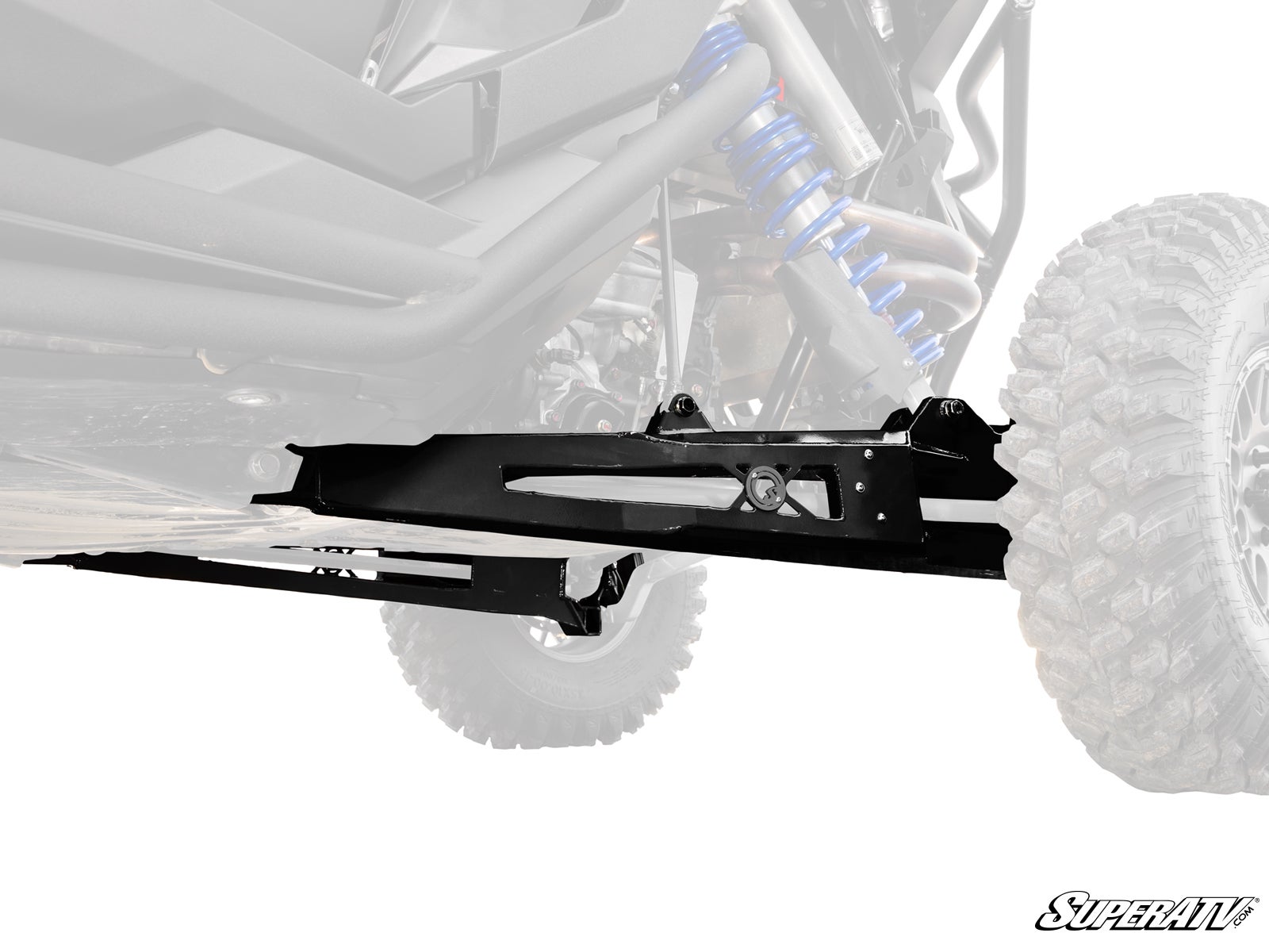These aren’t your average trailing arms. Made from 1/8” thick steel plating with 1/4” reinforcement in critical areas, they deliver unmatched strength. The premium steel alloy used has a higher strength-to-weight ratio than standard materials—even outperforming chromoly—so you can push your Pro R to its limits with confidence.