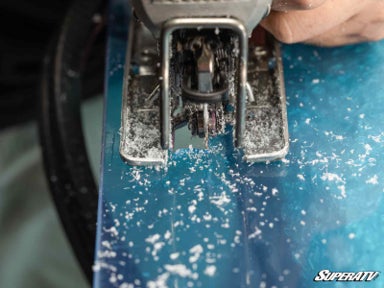 NOTE: Always wear protective gear and follow safety instructions when cutting the windshield to size.