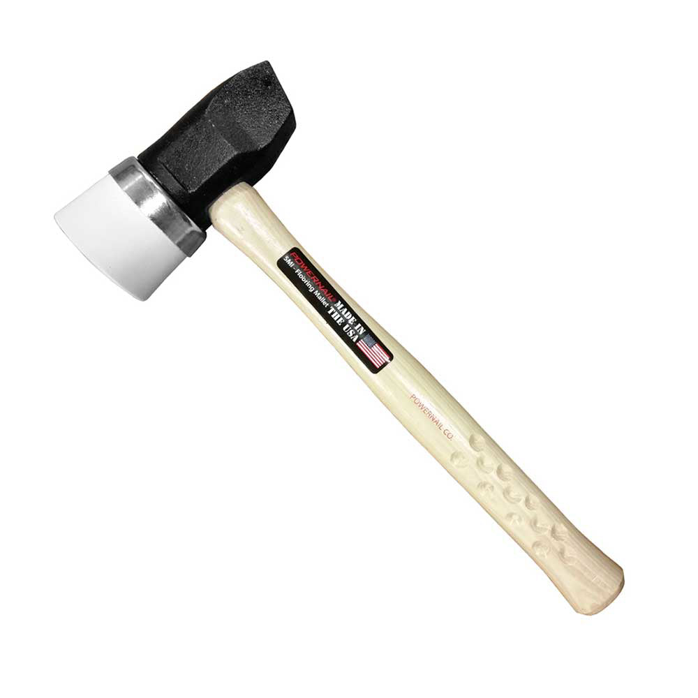 The choice of mallet can make a big difference in the installation of your floor. The Powernail 5MI, approximately 3.7 lbs. with rubber cap and malleable iron wedge, is the perfect weight and size to compliment our Powernail models 45, 45R, 101, 101R manual nailers. All of our mallets have American hickory handles designed to feel comfortable immediately and remain so as it wears into your grip. The 5MI comes with the white rubber no-mar cap and an iron wedge head combination. Our mallets are made in the USA.