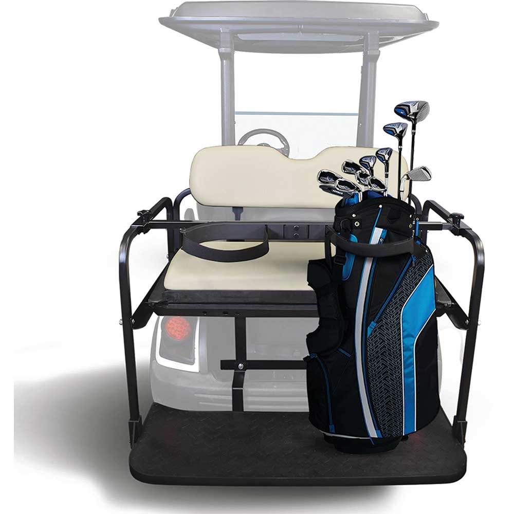 The RHOX Rhino seat kit in white is a durable, high-value upgrade for Yamaha G14–G22 golf carts. Built with a powder-coated steel frame and reinforced injection-molded plastic, this seat kit delivers long-lasting strength and reliability. Its convertible design transitions easily from a passenger seat to a cargo bed, while under-seat storage and compatibility with optional accessories such as grab bars, cup holders, and bag attachments add versatility to meet the demands of end users.