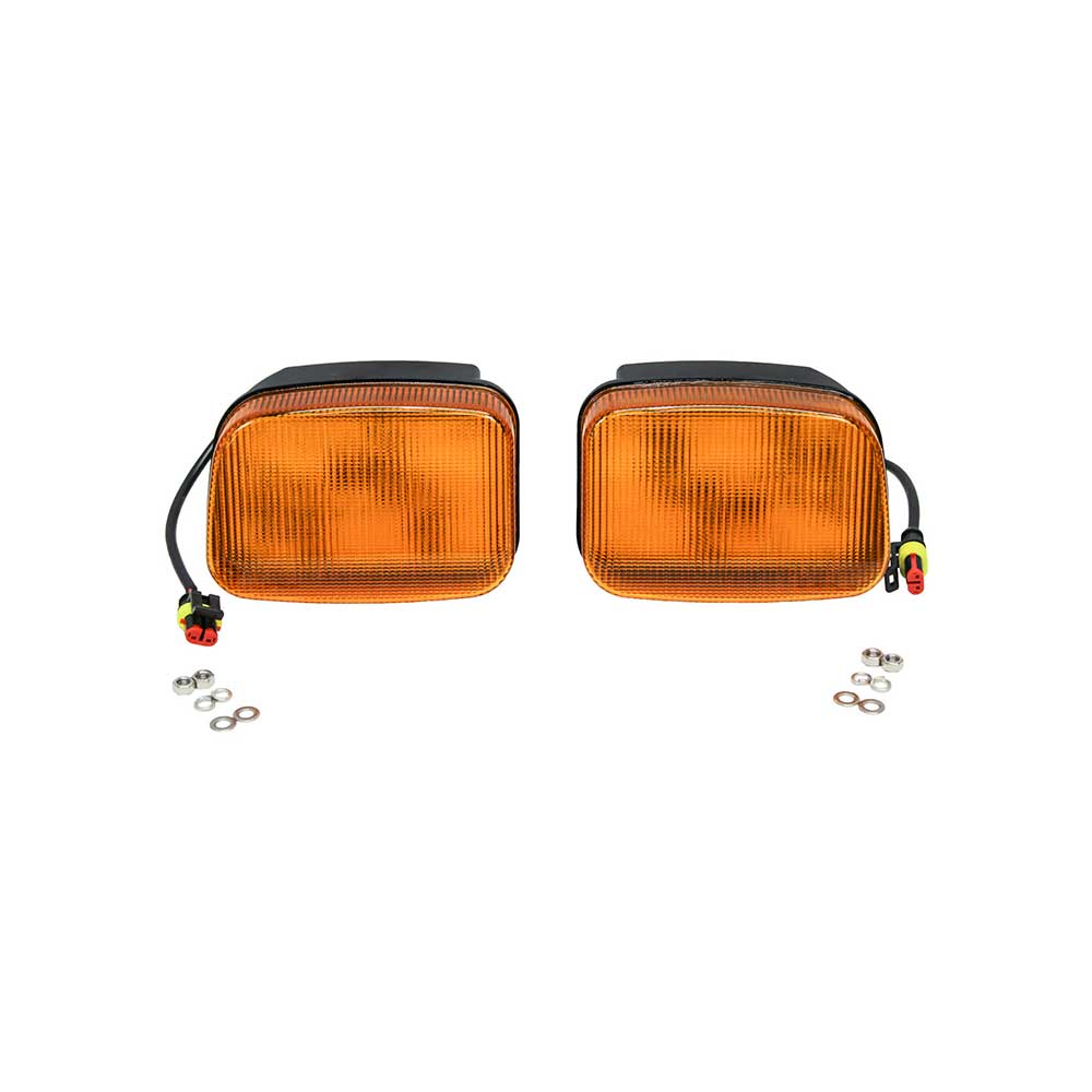 Complete plug and play replacement LED Amber Light Kit to replace the Left-Hand and Right-Hand Front or Rear Cab Corner Lights on John Deere® 5000-5010, 6M, 6000-6030, 7000-7030 and Advantage Series tractors. Save yourself time and money with LED Lights that are IP68 rated so that no dust will get in your light and your light can be fully and continuously submerged in water, but there will be no side effects. These lights have filters that will eliminate unwanted radio and electromagnetic frequencies from external sources. Their die-cast aluminum housing/heatsink gives them long-lasting durability for a high quality and long service life. Aluminum housing is specifically designed to dissipate heat away from the internal electronics, which increases light output and improves performance. This light is designed to handle any severe environmental condition. This LED Light features a durable polycarbonate lens, it is built to be RoHS compliant, and comes with stainless steel hardware. The color of light LEDs emit is near the color spectrum of the mid-day sun and allows the human eye to function and view objects better to improve your work environment.