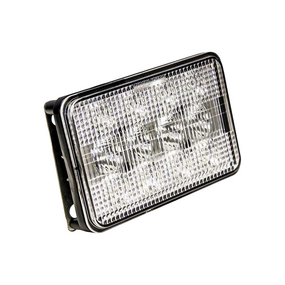 This complete plug-and-play replacement LED light is for the front hood light on John Deere® 6000-7010 Series tractors, forage harvesters, or sprayers. Save yourself time and money with LED lights that are IP68 rated so that no dust will get in your light and your light can be fully and continuously submerged in water, but there will be no side effects. These lights have filters to eliminate unwanted radio and electromagnetic frequencies from external sources. Their die-cast aluminum housing/heatsink gives them long-lasting durability for a high quality and long service life. Aluminum housing is designed to dissipate heat away from the internal electronics, increasing light output and improving performance. This light is designed to handle any severe environmental condition. This LED light features a durable polycarbonate lens, is built to be RoHS compliant, and comes with stainless steel hardware. The color of light LEDs emit is near the color spectrum of the mid-day sun, allowing the human eye to function and view objects better, improving your work environment.
