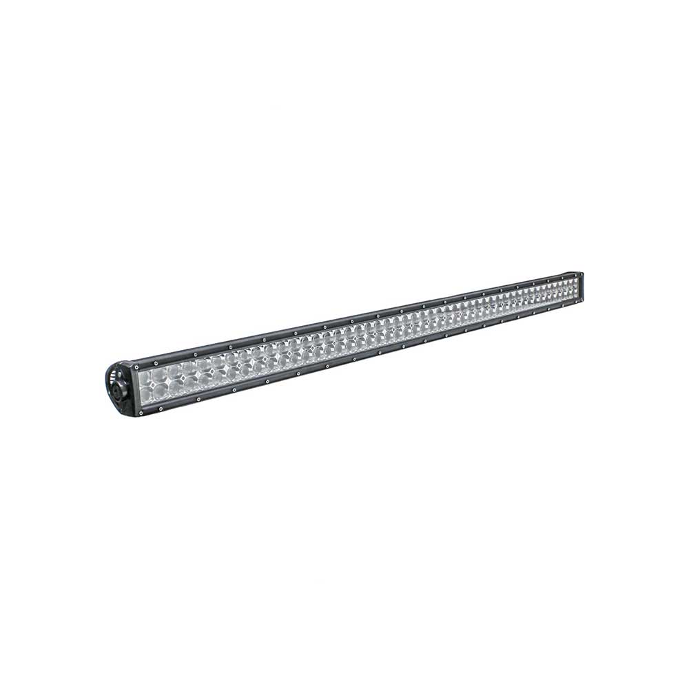 The KM LED 50-in. Double Row Light Bar features a durable polycarbonate lens, it is built to be RoHS compliant, and come with stainless steel hardware. The color of light LEDs emit is near the color spectrum of the mid-day sun and allows the human eye to function and view objects better to improve your work environment. Save yourself time and money with LED Lights that are IP68 rated so that no dust will get in your light and your light can be fully and continuously submerged in water, but there will be no side effects. These lights have filters that will eliminate unwanted radio and electromagnetic frequencies from external sources. Their die-cast aluminum housing/heatsink gives them long-lasting durability for a high quality and long service life. Aluminum housing is specifically designed to dissipate heat away from the internal electronics, which increases light output and improves performance. This light is designed to handle any severe environmental condition.