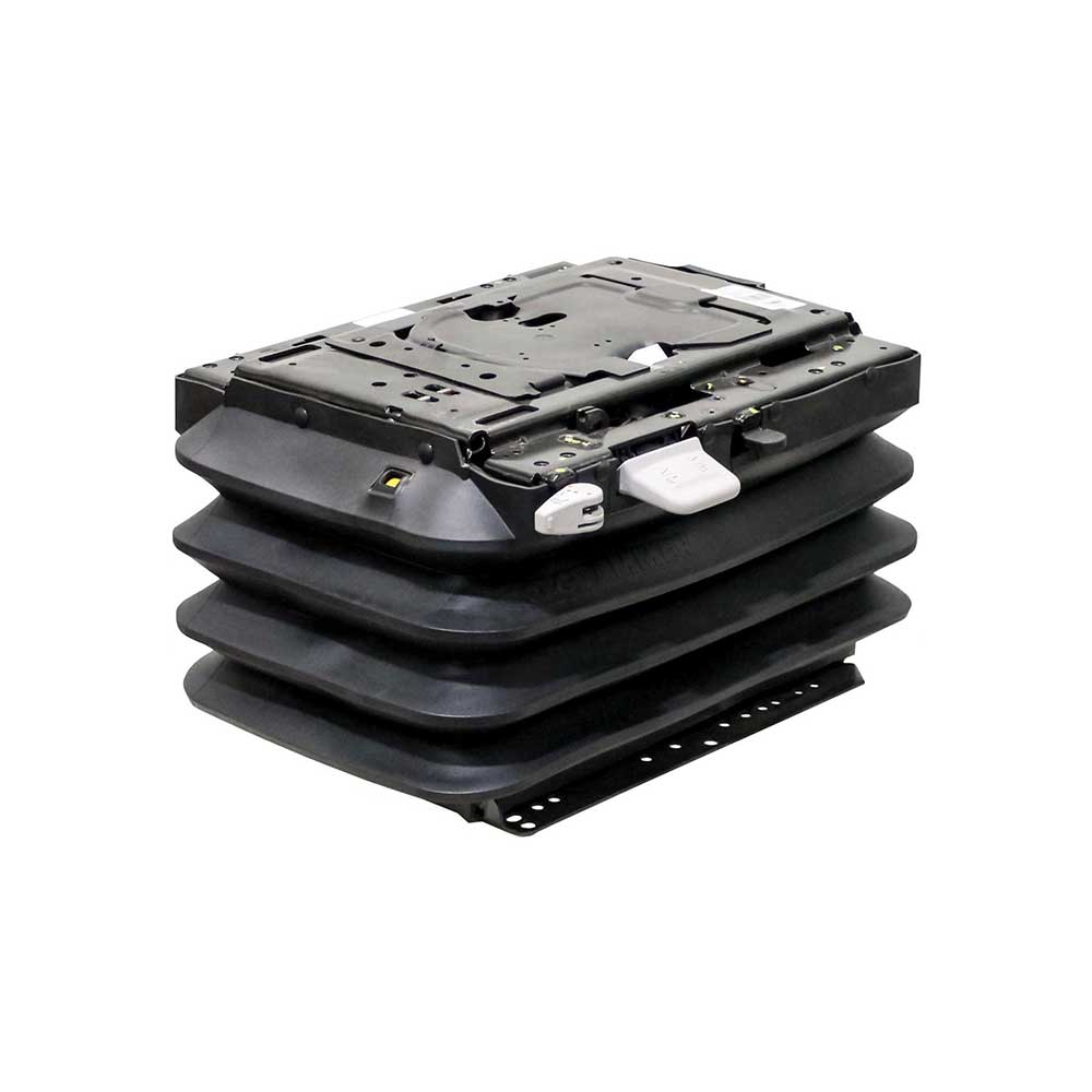 Use the KM MSG95GL DDS Air Suspension as a direct replacement for the original Grammer MSG95 DDS Air Suspension. This air suspension has been meticulously engineered to absorb the vibrations typical of heavy tractors and tractors with axle or cabin suspension. Ideal for providing you with maximum comfort in equipment where you'll be enduring every type of rough terrain. Features a Dynamic Dampening Suspension System (DDS): provides a smoother ride than usual air suspension seats by responding to low-frequency vibration/bumps that regular air suspensions can not. The DDS is designed with enhanced engineering using technology along with maintained air capacity in the suspension to allow for quicker response and limiting the suspension. The technology does not allow the suspension to bottom or top out, producing an "out of control" situation for the operator and machine. It automatically responds quicker to the vibration and bumps without the operator knowing what the seat is doing to keep them comfortable and in control of the machine.